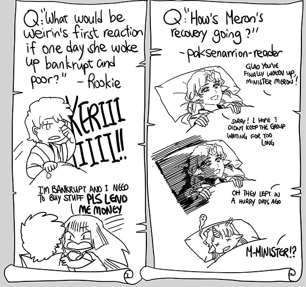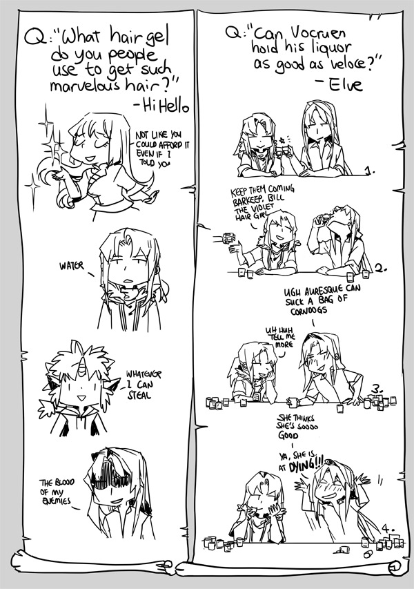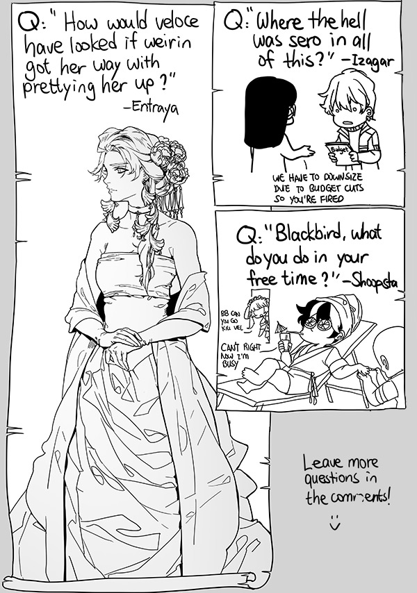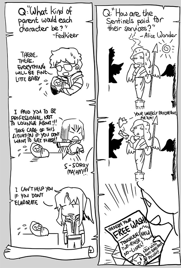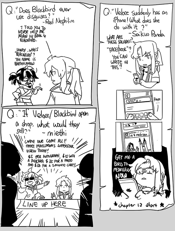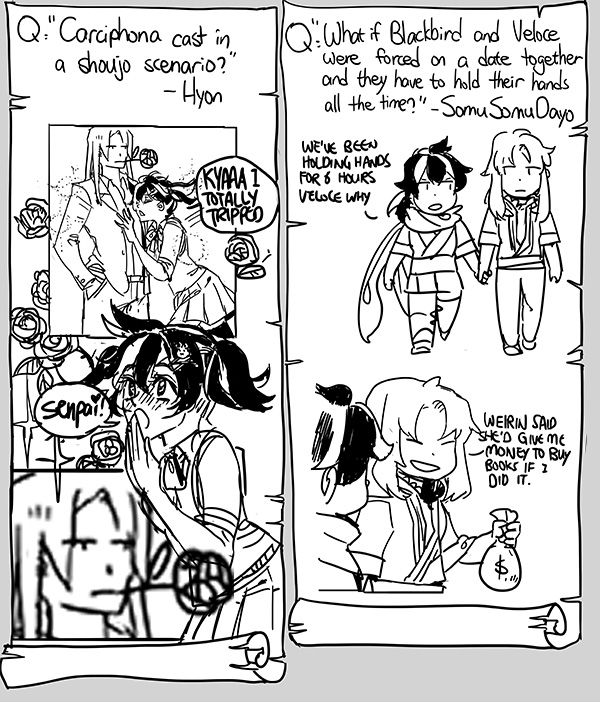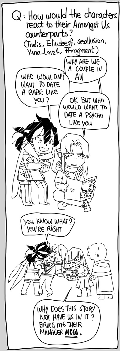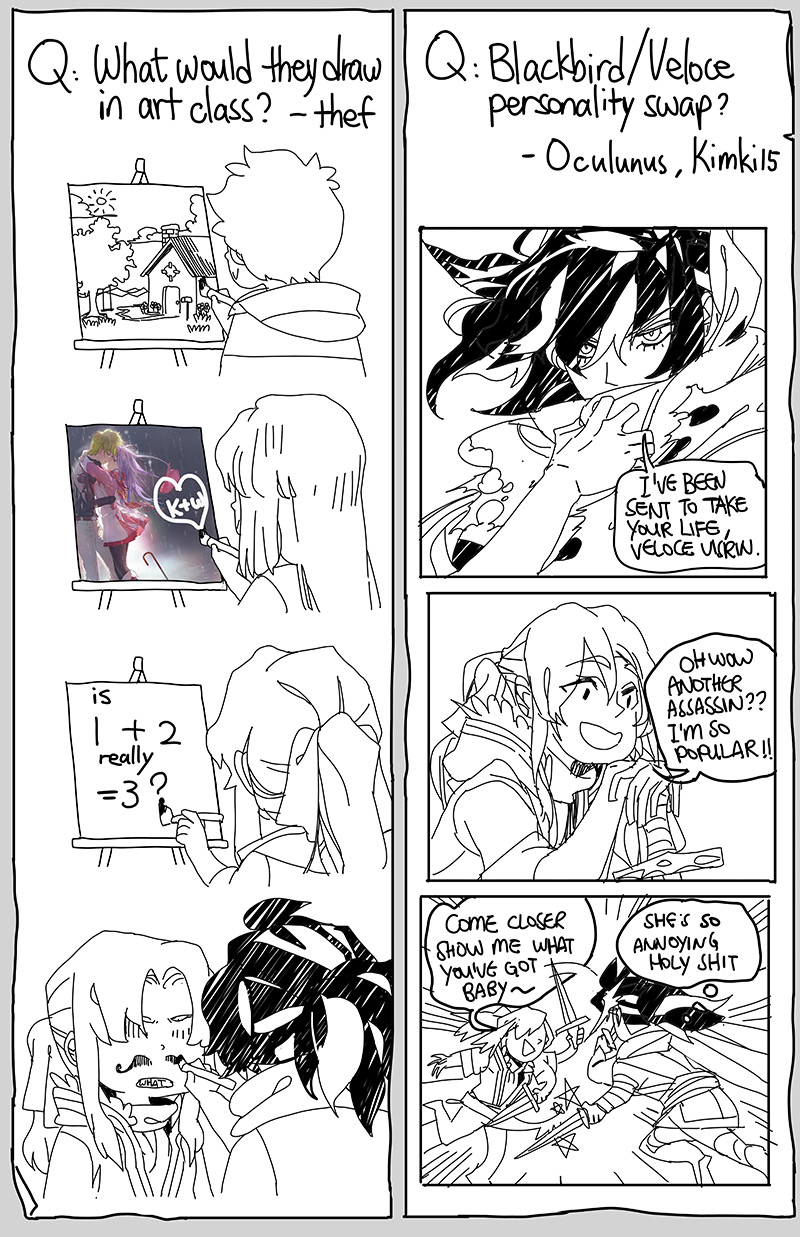 A few months worth of character Q&A fun comics that I did in between the publication of books 5 and the start of book 6 as I did storyboards, then again between 6 and 7! More to come in the future between volumes :D These contain SPOILERS if you aren't up to date with the current story, be warned!
